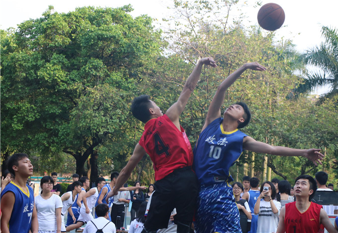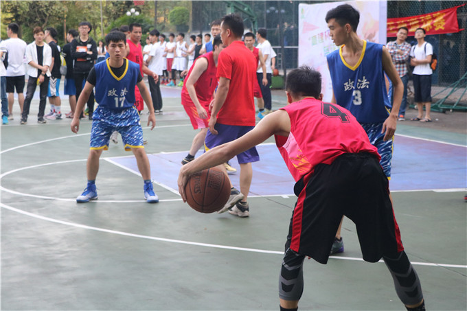 4月18日下午5点30分,“高建杯”篮球赛在大礼堂前的篮球场如期举行,教工队和政法91热爆