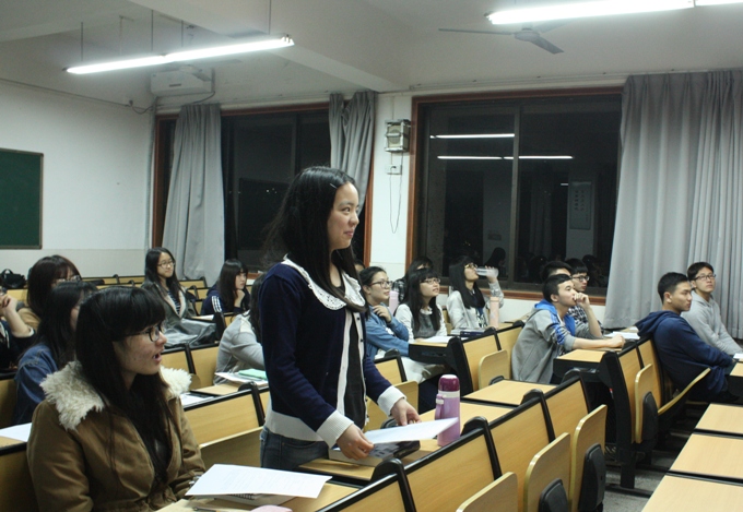 随后,团支书以幻灯片形式给团员讲解有关共青团的知识,以问答的方式考验同学们对共青团知识的了解。同学们踊跃举手发言,课室内的回答声,掌声朗朗入耳。随后,团支书播放中共90年发展历程的视频,同学们全神贯注地看着,这增长了同学们有关党的知识,增强团员意识。