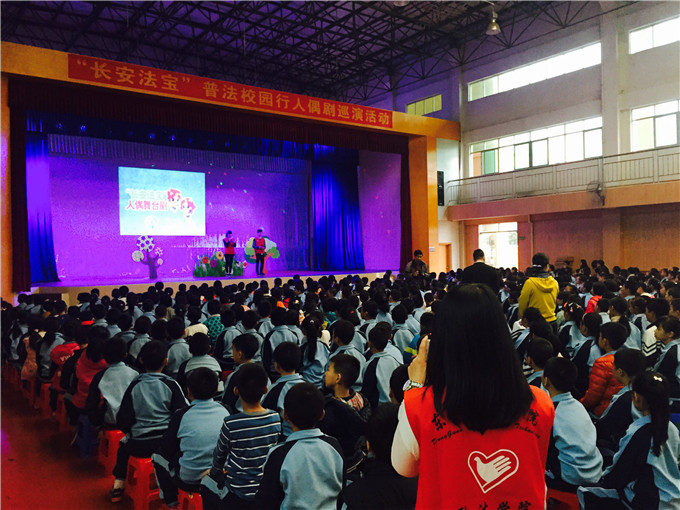 法律宣传志愿服务队一同来到东莞市长安镇厦岗小学,举办一场名为“让法律融润生活”的活动,并希望通过人偶舞台剧等方式,向小学生传播关于《中华人民共和国未成年人保护法》的相关知识。