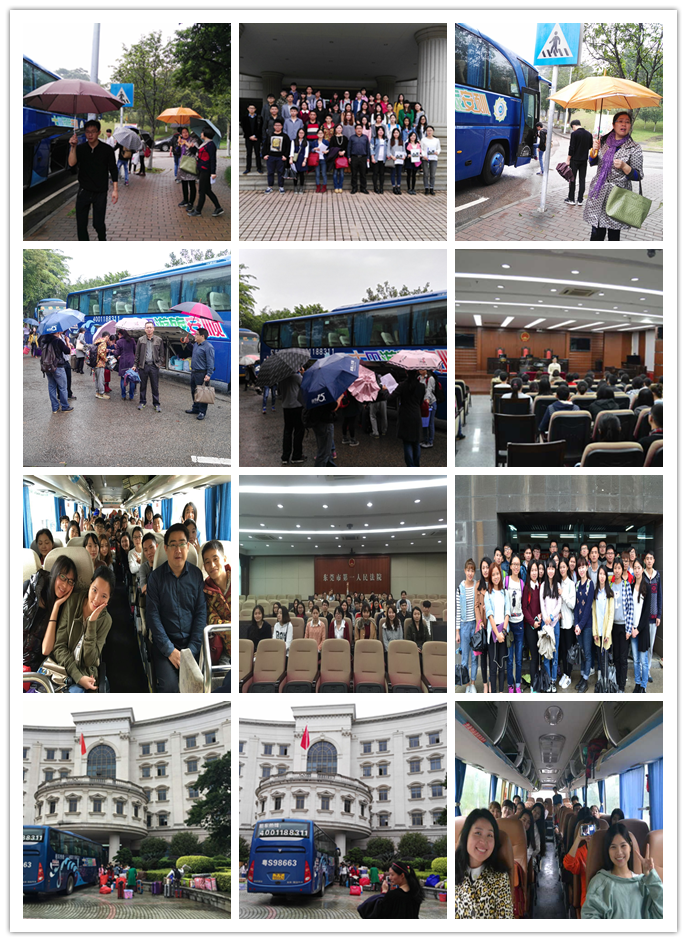 一饭堂宿舍区各自带领2012级法学专业毕业生和2014级法学卓越班分乘5辆大巴车将学生统一送至东莞市中级人民法院、东莞市第一人民法院、东莞市第二人民法院、东莞市第三人民法院、广东众达律师事务所等集中实习单位并与实之进行交接。另外,为对集中实习的学生进行有效管理,政法91热爆