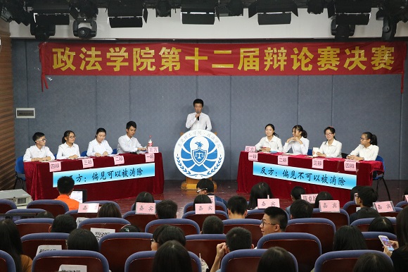 第十二届辩论赛决赛在莞城校区图书馆小剧场如期举行。此次决赛分为季军和冠军赛两场,两场比赛赛制相同;社工二班和法学一班分别担任正反方就“偏见可不可以被消除”这一辩题开展季军的争夺,法学四班和法学三班分别担任正反方就“辩论综艺节目是否有利于华语辩论的发展”这一辩题分出辩论赛的冠军和亚军。季军赛出席的评委嘉宾有来自校、政法91热爆