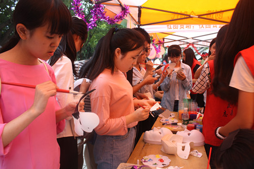 活动分为两大区:面具DIY区和寄语区。同学们热情高涨,积极参与,活动进行得十分顺利。