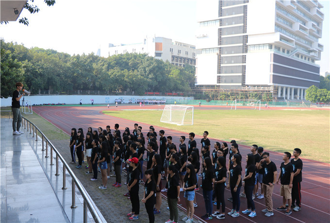 学生会主席骆雨珂的发言致辞后,拓展活动正式开始。首先,对全体干事进行分组,每组负责人组织队员选队长、口号、展示内容,随后上台进行展示。接下来,活动开始。每个小队根据任务卡,共同合作,依次完成游戏。每个小队需通关6个游戏,最后跑回操场主席台集合,用时最短的队伍获得胜利。