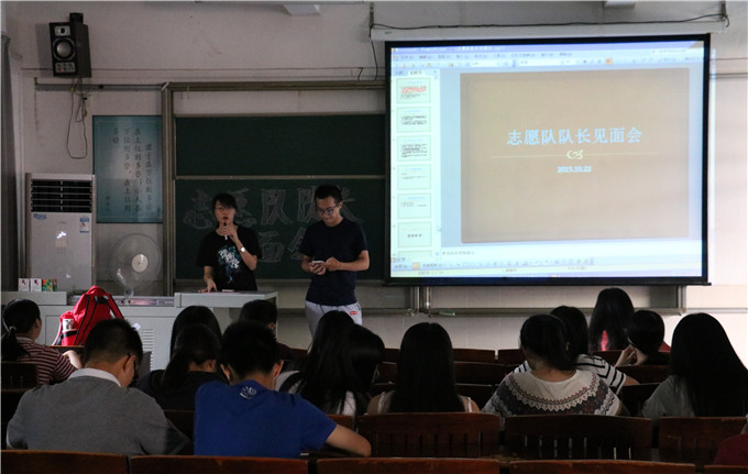 志愿服务站主任何绮琦、副主任李嘉欣及14级、15级各班志愿队队长参加此次见面会。