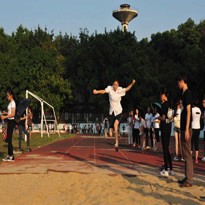 其中100米、200米的赛事最是激烈,运动员们蓄势待发,随着裁判发出口令,起跑线像一条绷紧了的弓弦,,哨声一响,瞬间射出“几支彩色的箭”,向着终点射去。而另一边,跳远比赛正在进行,运动员个个精神饱满,有序出场。口令发出,运动员们助跑、腾空、落地,身姿在空中划出一条美丽的弧线,赢得了在场观众的声声喝彩。与此同时,在操场的另一头进行着实心球比赛。实心球被掷出,一道道完美的抛物线出现在半空。他们互相竞争,成绩越投越远。