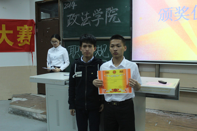 在莞城校区6#1课室举行了2014级新生职业规划大赛。出席本次大赛的评委有郭桦楷讲师、黄莹讲师、张达娜讲师、胡小彩讲师,嘉宾为政法学生会副主席吴丹丹。