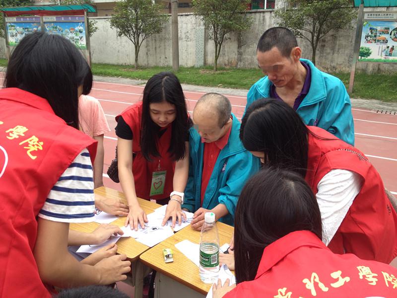 活动开始前,中心相关负责人对志愿者进行短时的活动培训和交流,这起指导性作用。活动开始,志愿服务站志愿者们主动上前与多位残疾人士慰问示好并在工作人员的指导下共同到达活动场地。活动期间,志愿者们比较重视与残疾人士的沟通交流,在中心智障部、精残部以及重残部都表现出耐心和理解,引导残疾人积极参与游戏中去,活跃现场气氛。活动设有多个游戏环节,随着游戏的展开,残疾人和志愿者都乐在其中,体验到人与人交流、合作的乐趣。下午5时,志愿者们与残疾人以及工作人员合影留念,大家都期待下一次的助残活动的开展。