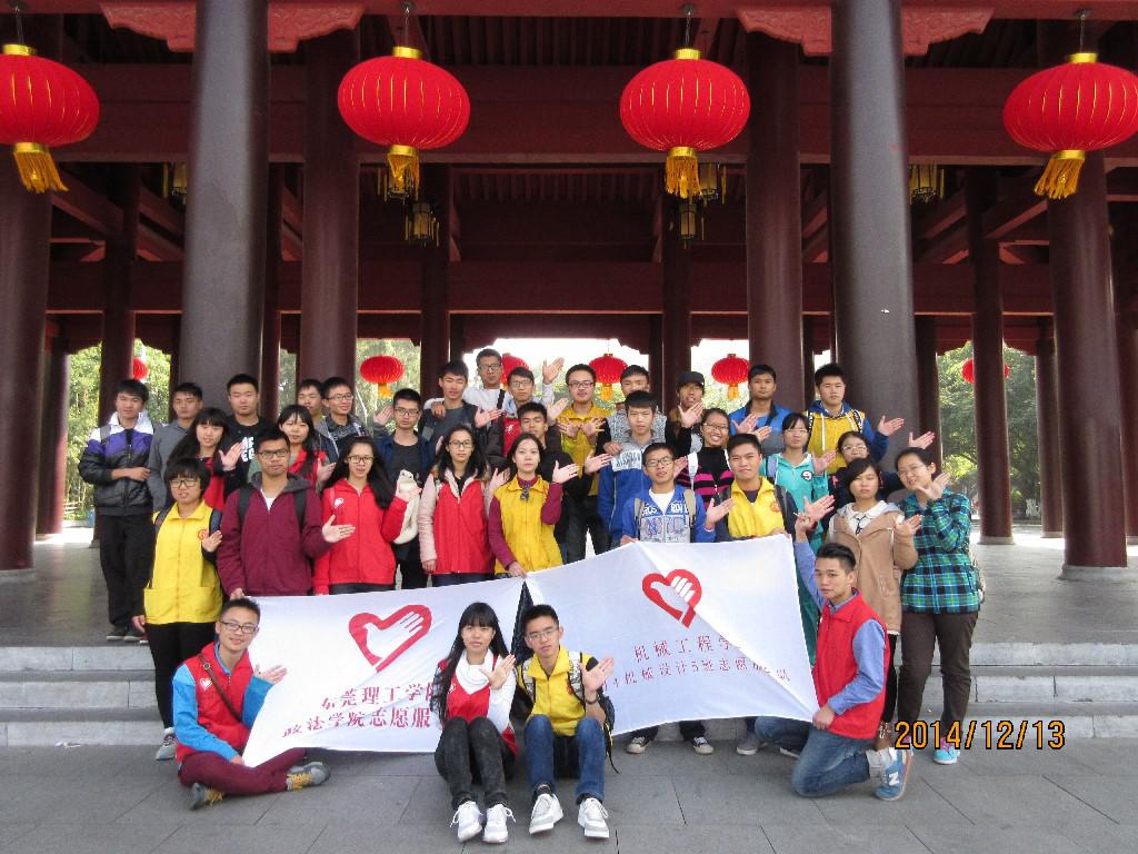 12月13号,14法学四班志愿服务队联合14机械五班志愿服务队到旗峰公园开展冬日锻炼你我行&低碳运动,健康生活的后期活动。活动的主要目的是让同学们走出宿舍,走出校园。践行冬日锻炼和低碳运动的理念。参加登山活动的同学八点在大学生超市门前集合,一起乘坐公车前往旗峰公园。同学们登上山腰。
