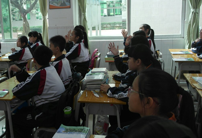 同学们争先恐后的举手回答问题