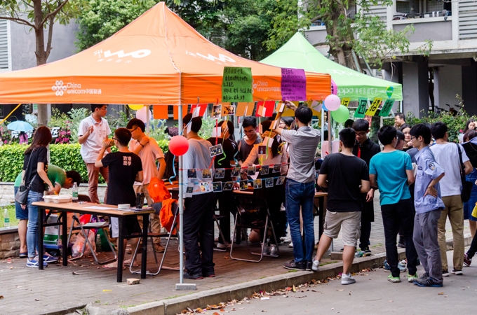 学生会在学生公寓广场宣传第十届科技学术节之模拟法庭的活动,同时也在今日为即将到来的模拟法庭活动招募演员。
