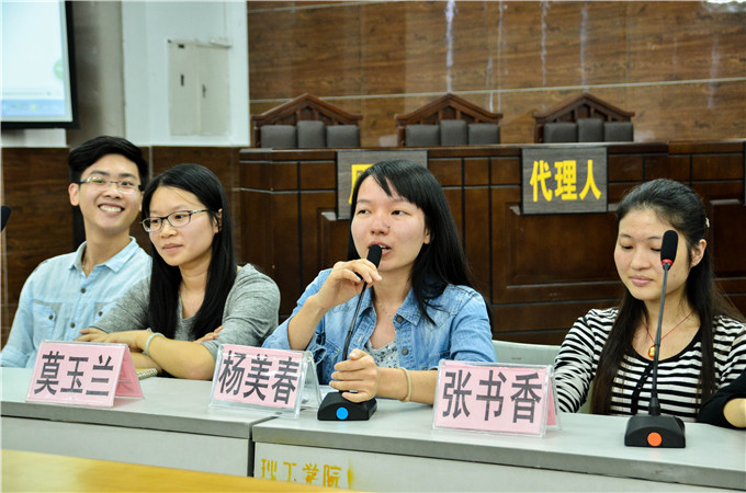 于模拟法庭举行了2014年司法考试交流会。