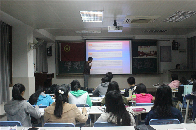 首先进行的是“社会主义核心价值观专题报告会”。这个报告会由心理委员主持,并由邵嘉桦同学对有关社会主义核心价值观的幻灯片进行生动有趣的讲解,让团员们在欢笑之余不乏对社会主义核心价值观有更深刻的理解。团员们以六人为单位分成八个小组,进一步探讨对社会主义核心价值观中概念“十二词”内含、我国现改革开放进程发展时期的价值意义、社会主义核心价值观宣传教育作用和社会主义核心价值观的基本原则和公民基本道德规范等知识的认识和理解。本次会议同学们的学习成果以小组选代表报告的形式展现,体现了本次专题报告会是拓展团员培育和践行社会主义核心价值观的有效途径,发挥了校园文化的熏陶作用。