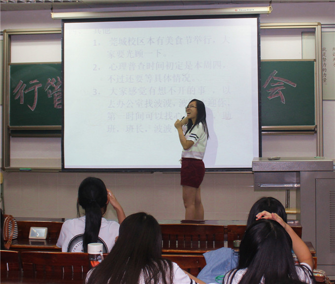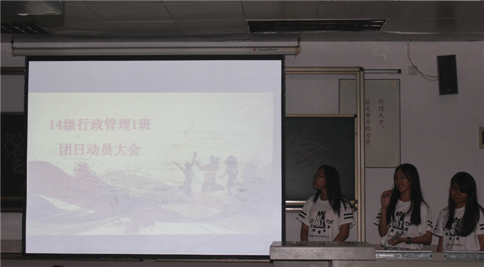 14行政管理1团支部在莞城校区3401课室召开了团日活动动员大会。大会由14行政管理1团支部团支书主持,围绕团日活动的目的与意义、三项活动的可行性分析和小组工作分配等议题进行宣讲。