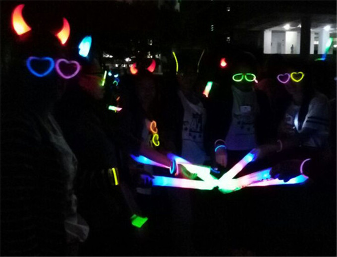 活动开始前,团支部在莞城校区1208课室用晚修时间介绍了活动开展的环节和目的,让同学们领略到这次活动是展现大学生激情与活力的平台,并派发了荧光夜跑需要的荧光棒、眼镜等相关器材、材料。会议结束后,同学们有序地到图书馆2楼集合,纷纷戴好了荧光眼镜、荧光头饰,并举着荧光棒进行了活动开始前的大合照,以纪念这个充满活力的“荧光夜跑”的开幕。