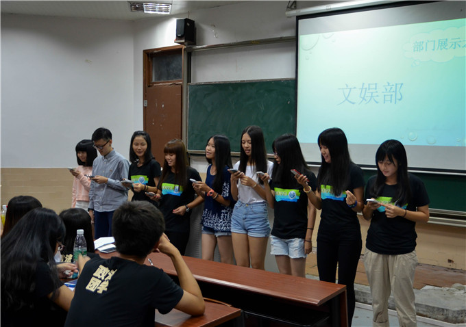 学生会第一次全体大会。学生会主席叶创新,副主席郑一匡、尹素欣、刘卓宏、吴丹丹及各位学生会委员出席了本次会议,学生会各部门干事也参加了本次会议。由秘书处部长陈丹彤主持会议。