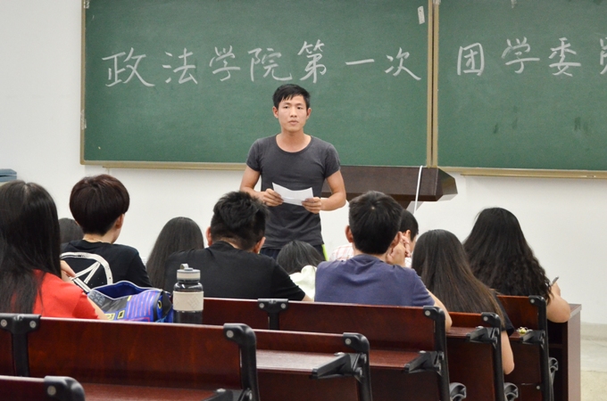 会议伊始,在学生会主席叶创新以及团总支第一副书记袁智勋的一一介绍下,学生会以及团总支的各个部门的部长及代表分别上台对于部门的组织性质、组成人员进行了介绍,并且对于各自部门的未来部门事务进行计划进行了简单介绍,并且对于部门的前景进行了展望,整个讲话过程充满了乐观积极的态度。