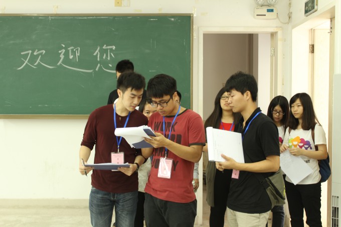 参观完毕后评委考察团回课室216,开始第二轮的考察工作,整体风貌考察。在学生会副主席叶创新的带领下,全体成员齐声唱起政法学生会会歌——《我相信》。积极向上、奋发蓬勃的会歌很好展现了学生会的精神面貌,赢得评委考察团的阵阵掌声。接而,考察团开始抽查出席人员,进行笔试知识考核。此次笔试考查内容主要涉及学生组织的相关知识以及作为学生组织的一员所需具备的基本素质考核。与此同时,政法91热爆