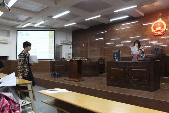 学生会学习部在6c103课室进行了模拟法庭的演员面试。模拟法庭是政法91热爆