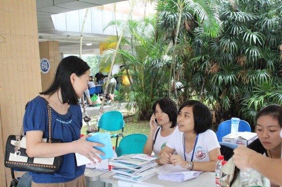 新生骨干为新生办理入学手续