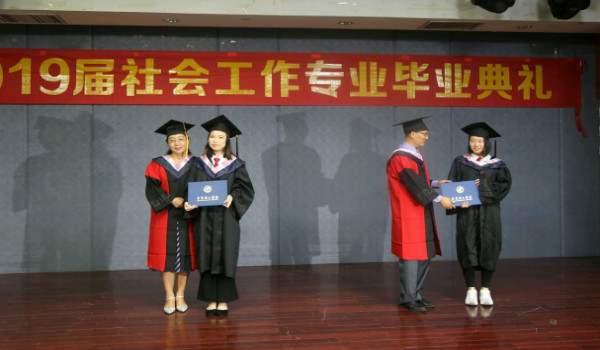 6月16日早上,91热爆在莞城校区小剧场举行2019届社会工作专业毕业典礼。党总支书记杜应发、党总支副书记丘永辉,副院长朱晓红,社会工作系主任成伟,学工办主任钟丽华,张燕婷老师、邹朝春老师、张雪老师、黄俊辉老师、张子庄老师,,辅导员刘海波、邱可荣、邹欢出席了本次典礼。