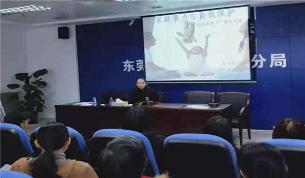 )来到东莞司法局东城分局进行“家庭暴力与自我保护”普法宣传活动。