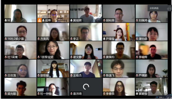 5月10日上午“云端”毕业答辩开始前,各个答辩小组成员都在镜头前展露了自己精神且活力的面孔,与老师们共同拍下了“云相聚”的大合照。答辩组长老师用心地为同学们准备了一段开场语,久违的大学课堂时间忽然回到眼前,毕业生们有幸地参与大学的最后一课。