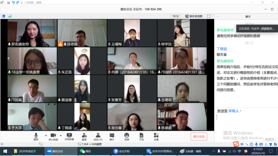 虽然是“云答辩”,但老师对于毕业论文的要求丝毫未减,答辩流程紧凑有序,过程公开透明,程序标准规范,答辩整体氛围比较活跃。老师们耐心地提出具有建设性的意见,使得整个“云”答辩有了温馨的氛围和学术上的吸引力,同学们也根据答辩老师提出的问题作出认真分析并回答,为大学生涯最后一份问卷画上了完美的句号。
