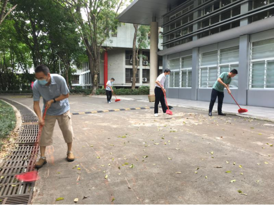 负责学术报告厅—礼堂招待所路段清扫。参加活动的同志均按照新冠肺炎疫情防控相关要求佩戴口罩,做好个人卫生防护。大家各司其职,扫除、清理了杂草、枯枝败叶等垃圾,在大家的共同努力下,校园卫生环境得到明显改善。