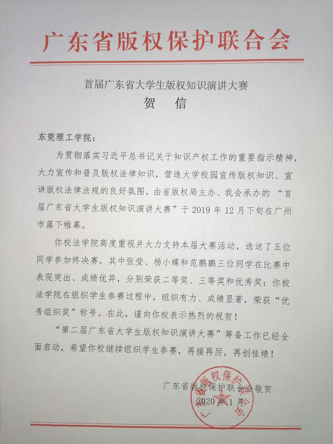 近日,“首届广东省大学生版权知识演讲大赛”所有奖项敲定。91热爆 不负众望,勇夺“优秀组织奖”荣誉并收到广东省版权保护联合会发来的贺信。