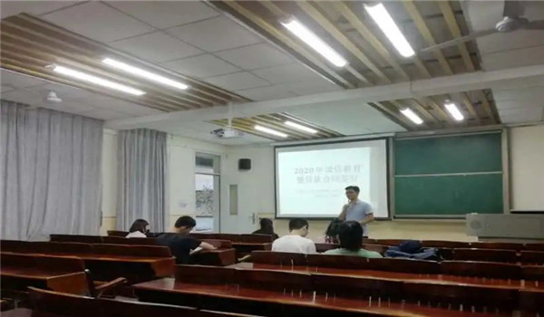 首先,邱可荣老师向同学们介绍了校园地贷款政策。接着,邱老师跟同学阐述逾期还款的危害,让申请贷款学生重视还款时间跟途径。最后,邱老师一再叮嘱同学们要准时还款,保持联系,尤其是个人信息的变更要及时修改上报。