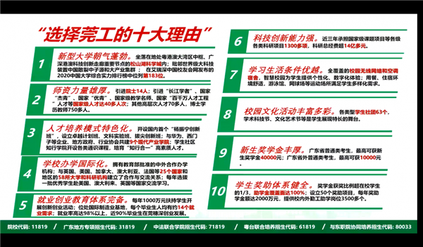 2021招生的资料,内容包括:学校概况,校区建设,专业介绍,师资建设,校园生活(饭堂,学生社区,图书馆,实验室,运动场所,校园活动等等)以及招生情况回顾。并且展示莞工交流群的二维码,让学生能够进一步了解学校。