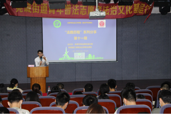 )法律系主办的第十一期“法路历程”系列分享在莞城校区图书信息中心负一楼小剧场举行。主讲嘉宾是广东权晔律师事务所合伙人周键涛律师。周律师具有国内和海外管理学和法学复合背景,曾就职于大型投资银行及PE投资机构,擅长私募基金投资、企业资产重组、新三板及主板投资银行业务及大型商事纠纷案件,有丰富的法律实务经验。本次分享由法律系副主任吉海荣老师主持。