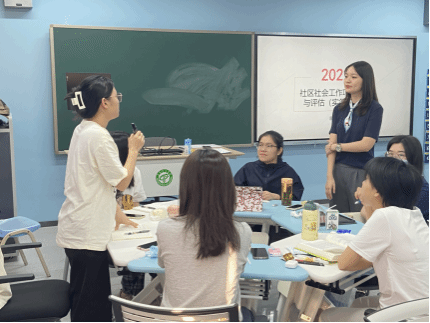 在《社区社会工作项目设计与评估课程》里,高级社工师袁美芝为我们介绍了社区工作的具体内容,也详细向我们介绍了社区社会工作项目设计的流程和注意事项,并现场进行项目书编写,最后袁老师对我们编写的项目书进行指导,提出改进意见。为了让我们更加理解社区工作方法和理念,袁老师向我们介绍了一些优秀项目,其中让我们印象最深刻的就是社区阿姨们的创业故事。社工为了帮助社区内的残障阿姨们走出困境,开设了手工包学习活动,阿姨们通过学习手工包制作并售卖手工包,不仅有了资金收入,也加强彼此间交流,更好的融入了社区生活中,变得更加自信自强,走出了生活和人生的困境,迎来美好和未来。