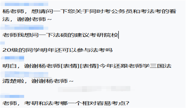 本次宣讲会受到了同学们的踊跃报名,共300多位同学报名参加。在自由交流环节,同学们针对法学生职业规划、考研院校选择等热门问题提问,杨帆老师一一耐心地解答。
