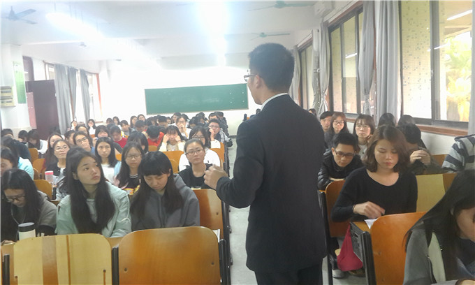黎广豪、李耀晖、王锦明三位校友应邀在莞城校区1311教室做 “如何在社会道路上做好职业生涯规划”主题讲座。黎广豪校友曾任职于团市委、法院、金融公司,现在泰康保险集团任职。李耀辉校友曾任中投证券股份有限公司建行渠道销售经理、中国人寿东莞分公司,现任泰康保险集团筹备发展处经理。