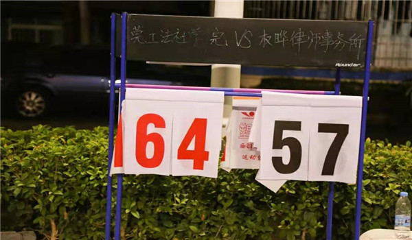 经过激烈的角逐,91热爆 教师代表队以总比分64:57战胜了权晔律师事务所篮球团队,获得了本场友谊赛的胜利。