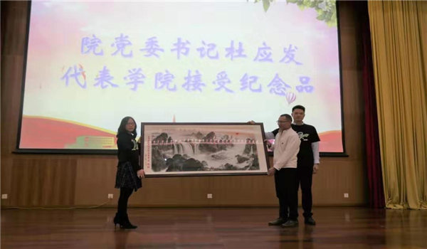 接受纪念品。杜老师表达了对大家的美好祝愿,也希望大家能通过这次的平台来更好地表达。在仪式彩蛋环节中,李益民老师为大家准备了他亲笔写的墨宝