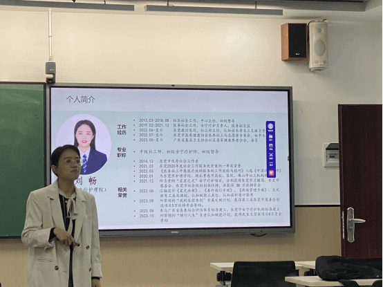 刘社工强调在开展机构养老认知症长者服务时,应尊重老人的需求,而不是只看到病症。通过介绍认知症的概念、特征、发展、评估及蒙氏照顾法,让同学们可以更全面、细致地理解认知症长者,提供更加人性化、高效化的服务。丰富了同学们的理论知识,也深化了对认知症长者内心世界和照护需求的感知。