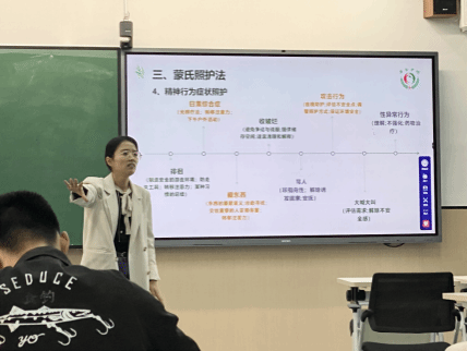 刘畅社工通过体验互动“院长畅想曲”,引导同学们使用工具思维导图,畅想自己是院长,以老年人需求为导向,构思如何分配100张床位?并邀请同学分享。从而引出护理院建设的基本标准,包括床位数量、科室设置、人员配备等内容。接着,她分别从技术、资金、服务、供应支撑四个方面,详细分析以医养一张床为核心,拓展多元医养的服务模式。做到全人、全家、全程、全团队、全社区的五位一体服务模式,以全人全程的闭环管理,制定个性化护理计划。