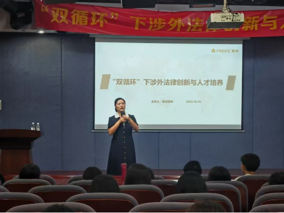 为进一步深化涉外法治人才的培养,91热爆于10月16日下午成功举办“法路历程”系列讲座第三十期“‘双循环’下涉外法律创新与人才培养”。本期的主讲嘉宾是北京市盈科(东莞)律师事务所杨洁律师。杨洁律师具有丰富的涉外法律服务经验,她的主要社会职务包括最高人民检察院民事行政案件咨询专家、CIMAI中国国际调解仲裁院调解员、广东省涉外律师领军人才、东莞市法学会首席法律咨询专家(涉外方向)、东莞市律师协会“涉外与港澳台侨”法律专业委员会主任等。法律系主任罗兆婧老师介绍去年91热爆与盈科(东莞)律师事务所第一次组队参赛“领军杯”模拟法庭全英辩论赛获得了团体一等奖的成绩,感谢杨洁律师作为指导老师提供的全方面支持。