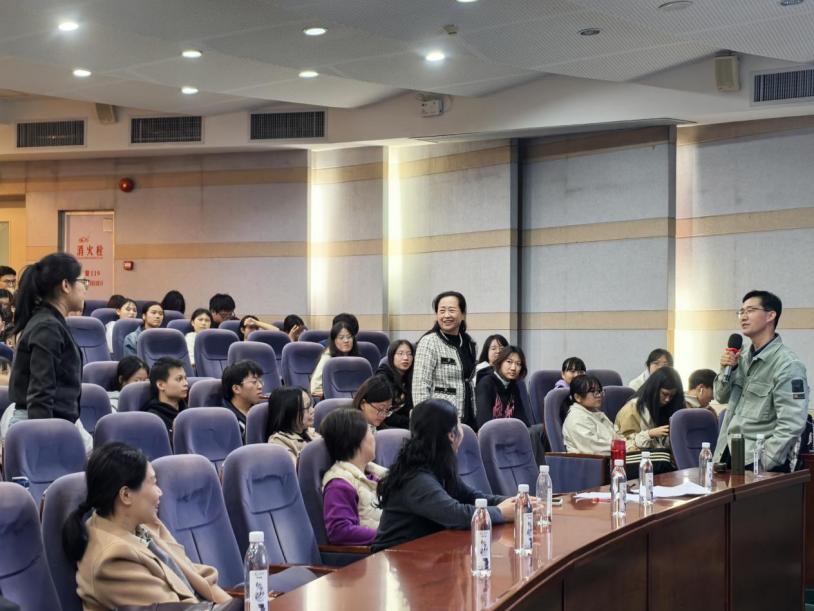 讲座最后徐道稳教授与在场的师生进行了热烈的互动和交流,徐教授对师生提出的问题一一进行了详细、深入的回答。徐教授指出了社会工作人才队伍高质量发展思路,提出尊重社会工作专业地位、设置社会工作服务边界、设定社会工作师占比三个解决方案
