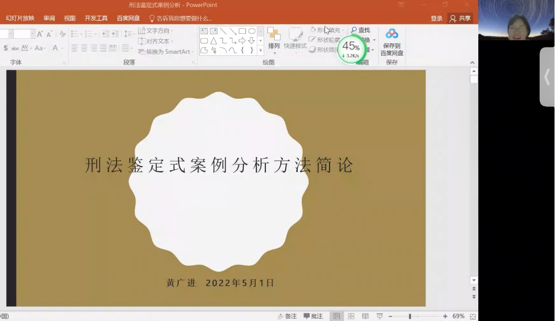 黄广进老师首先向我们介绍了鉴定式案例分析的来源与出处及其历史发展。她指出:学习鉴定式案例分析法,能够使学生更好地立足于实证法规范,将理论体系系统化和实用化,得到法律思维的锻炼与提升。