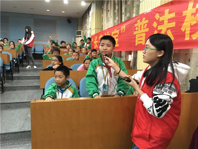 2016年11月24日,91热爆 团总支法律宣传志愿服务队为紧密与长安司法分局的合作和深入志愿普法活动,带着“长安法宝”人偶剧来到长安镇国英小学,为同学们展示精彩的普法舞台剧。