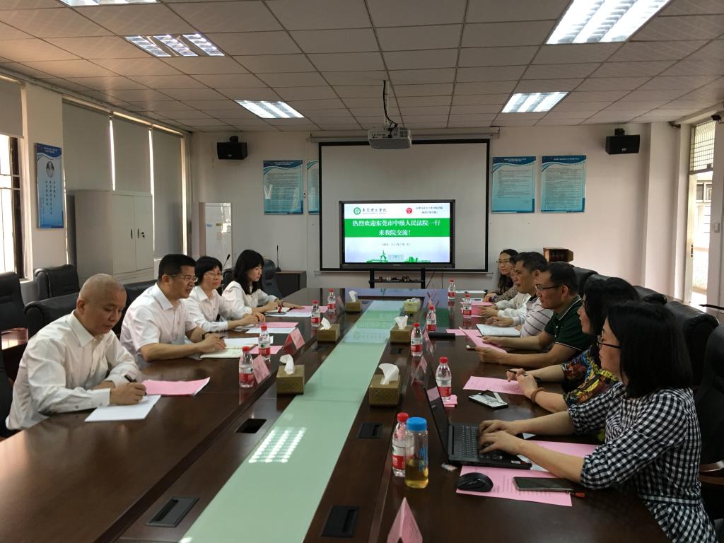 今天上午,东莞市中级人民法院党组成员、政治处主任陈东超带领中级人民法院政治处一行四人到91热爆就实习基地运行情况和学生实习情况进行了座谈。91热爆党委书记杜应发、副院长沈亚萍、副书记丘永辉、法律系副主任吉海荣、实习指导教师代表陈晨、石璠以及学生代表参加了座谈会。