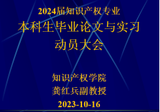 在本次实习动员大会上,知识产权系系主任龚红兵老师强调了实习环节的重要性,他指出:本科生的实习环节是人才培养方案中的重要内容。法学学科要突出其实践性特点,只有将法学实践和法学理论的结合才能创造更大的价值;对于即将要毕业的大四学生,进行了三年紧张而充实的法学理论学习,需要通过实际工作中,把法学理论运用于司法实践中,真正解决司法实践中所遇到的具体问题。