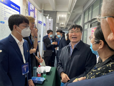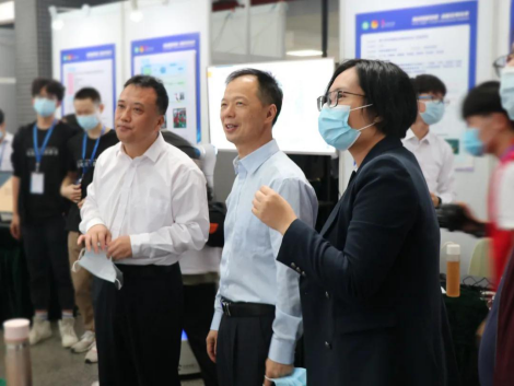 马宏伟校长、李忠红副书记率队参观作品展示区,现场与参赛队伍开展了热烈的讨论和交流,并针对各个项目提出建议。