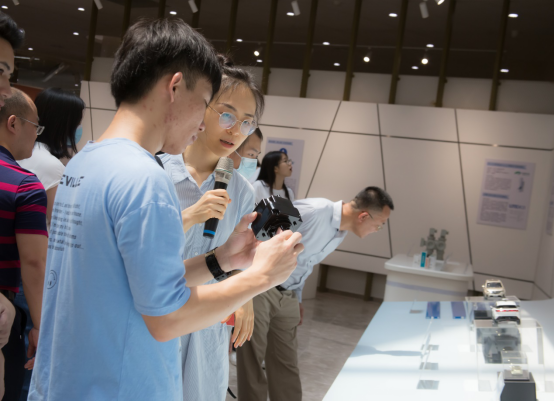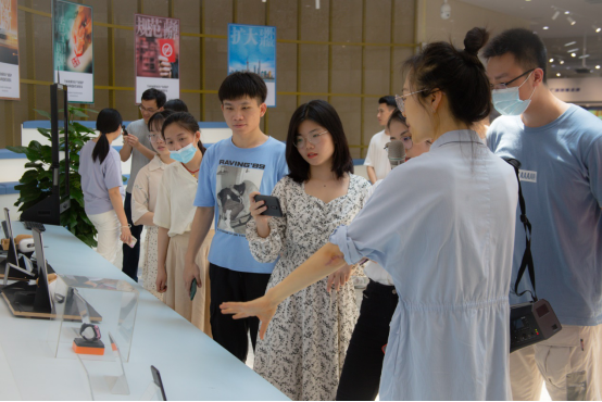 活动期间,审查员带领师生参观知识产权发展成就展、知识产权文化传播与普法基地,就知识产权历史起源与发展、知识产权的价值与作用、知识产权的保护以及相关政策展开介绍,进一步促进学生对知识产权工作的理解和认同。展厅陈列了第二十一届中国专利奖部分得奖作品,其中包括深圳市大疆创新有限公司的云台相机(外观设计金奖)、OPPO手机(外观设计金奖)、广州汽车集团股份有限公司的汽车(外观设计金奖)、深圳迈瑞生物医疗电子股份有限公司的一种弹性成像中的位移检测方法及装置(专利金奖)等。在审查员的引导下,部分学生对展览作品进行了观摩与体验。