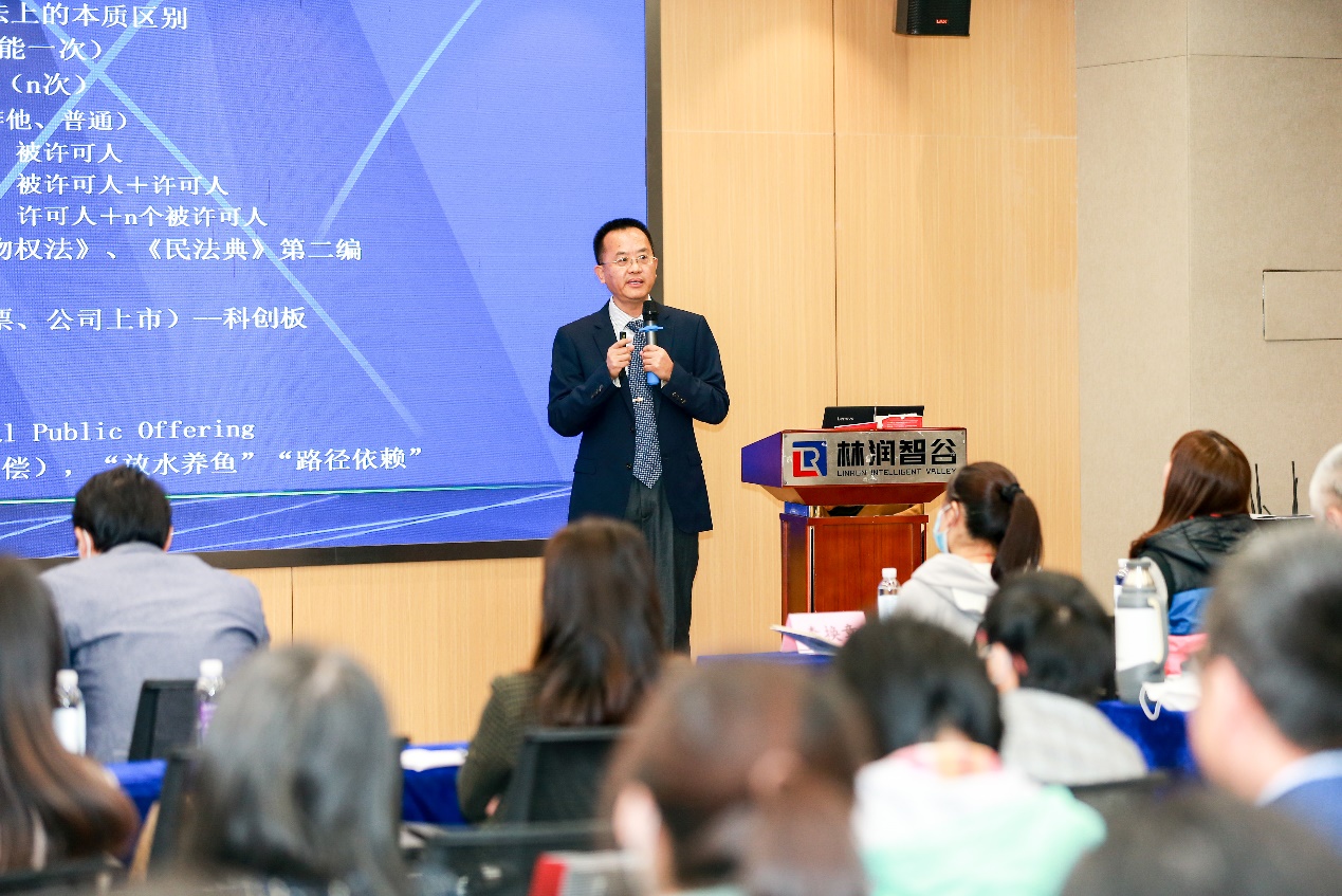 副教授龚红兵从法学的角度向我们讲解知识产权运营中法律问题的核心——转让与许可,介绍了知识经济时代的主要特点,从科技成果转让、许可和作价投资等方面讲解了如何开展知识产权运营,并从《民法典》的角度介绍了知识产权运营的法律根基——合同法的基础知识,运用实际案例剖析知识产权运营中有关合同法的法律问题。