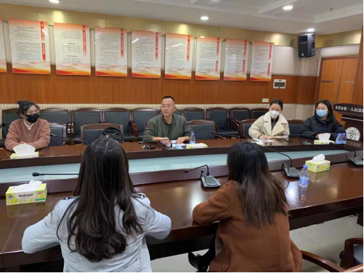 而后龚老师与实习生们在东城法庭的会议室与同学们进行交谈,深入地了解每一位实习生在实习过程中学到的知识、技能,以及同学们在实习中的收获。会谈中,龚老师也与实习生们的指导法官进行交流,具体了解同学们的在实习工作中的各项表现。会谈中,很多同学都表示:经过近两个月的实习,同学们已经从刚开始的对案件的审判工作的迷茫与不知所措,转变为现在对案件的审理工作和流程整体把握清晰状态,把课本的理论知识蜕变为实际运用能力,从经手的每一份判决中获取法律人的思维,从对案件流程的工作细节中提升了自己的法律知识和职业素养,从法院的优秀法官、书记员等各工作人员身上学习到法律人的优点,真正体验到了每一位法官在践行习近平总书记所说的“努力让人民群众在每一个司法案件中都感受到公平正义”所付出的努力和艰辛。同学们纷纷表示,都已经在实习工作中找到了法律人的成就感,并表示要通过自己的不断的学习和努力,不断地铸就法律人的逻辑思维能力。