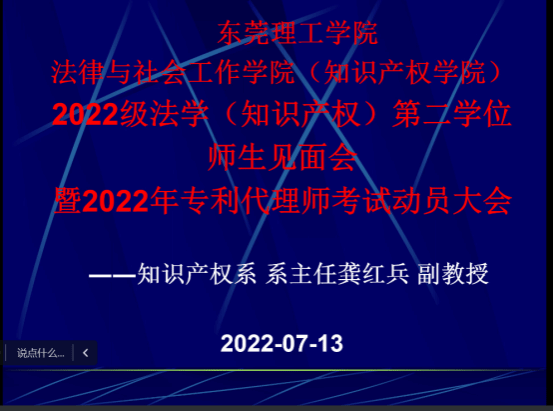 )在腾讯会议上举行了2022级法学(知识产权)第二学位师生见面会暨2022专利代理师考试动员大会。